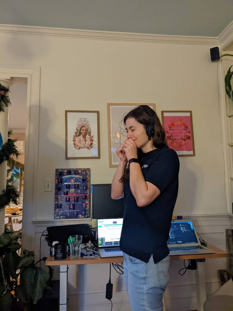 El día de Nochebuena no pudo ser más distópico: consultando el email, y las noticias compulsivamente y esperando no ver ninguna noticia que ni siquiera implicara de lejos otro retraso. Como el lanzamiento de JWST era a las 7:20 de la mañana, la cena de Nochebuena fue escueta, y rápida. No me iba a la cama tan temprano en Nochebuena desde que de pequeña nos advertían que si no nos íbamos a dormir Papá Noel pasaría de largo por nuestra casa y nos quedaríamos sin regalos. Eso si no se daba cuenta de que en realidad ese año me había portado regular para variar. Puse tres alarmas en tres dispositivos diferentes, por si acaso alguno fallaba y no me despertaba. Me costó conciliar el sueño, de hecho no sé si realmente dormí, porque en mi cabeza no dejaba de visualizar el lanzamiento, la emoción de lo que iba a pasar al día siguiente, y los nervios por si algo no salía como esperado. Me levanté unos pocos minutos antes de que sonara el primer despertador a las 5:30, ¡para qué dormir más en un día como hoy! No me levantaba con tanta ilusión en un día de Navidad desde que era una niña. En 20 minutos estaba lista para salir. Primera parada a las 6:00 de la mañana: el Dunkin Donuts. Lo sé, no es precisamente realfooder (¡aquí no hay churrerías!). Quedé realmente sorprendida de ver que el día de Navidad hay gente a esas horas con ganas de Donuts. De ahí a casa de un amigo y compañero del equipo que gentilmente puso su salón para hospedar el evento.